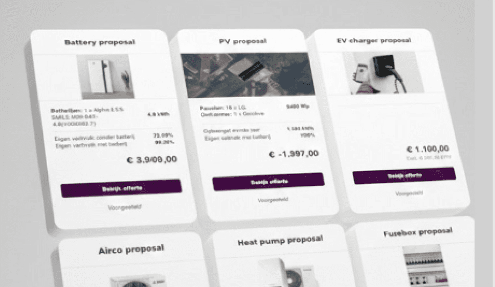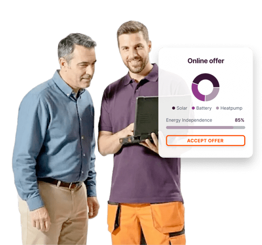 Design and calculate Design a system with solar, battery or a heat pump and calculate the expected returns. Tailored to your customer’s situation.