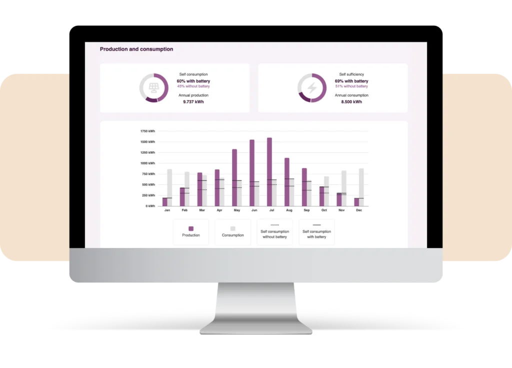 In addition to self-consumption, Solar Monkey also calculates self-sufficiency: the extent to which a customer is independent of the electricity grid.