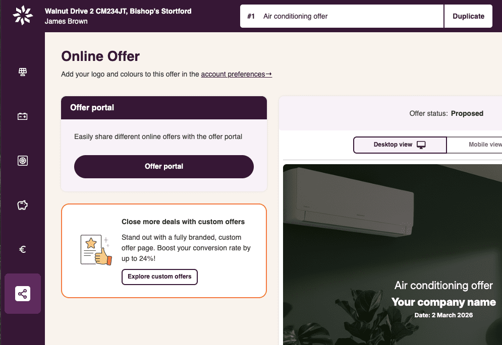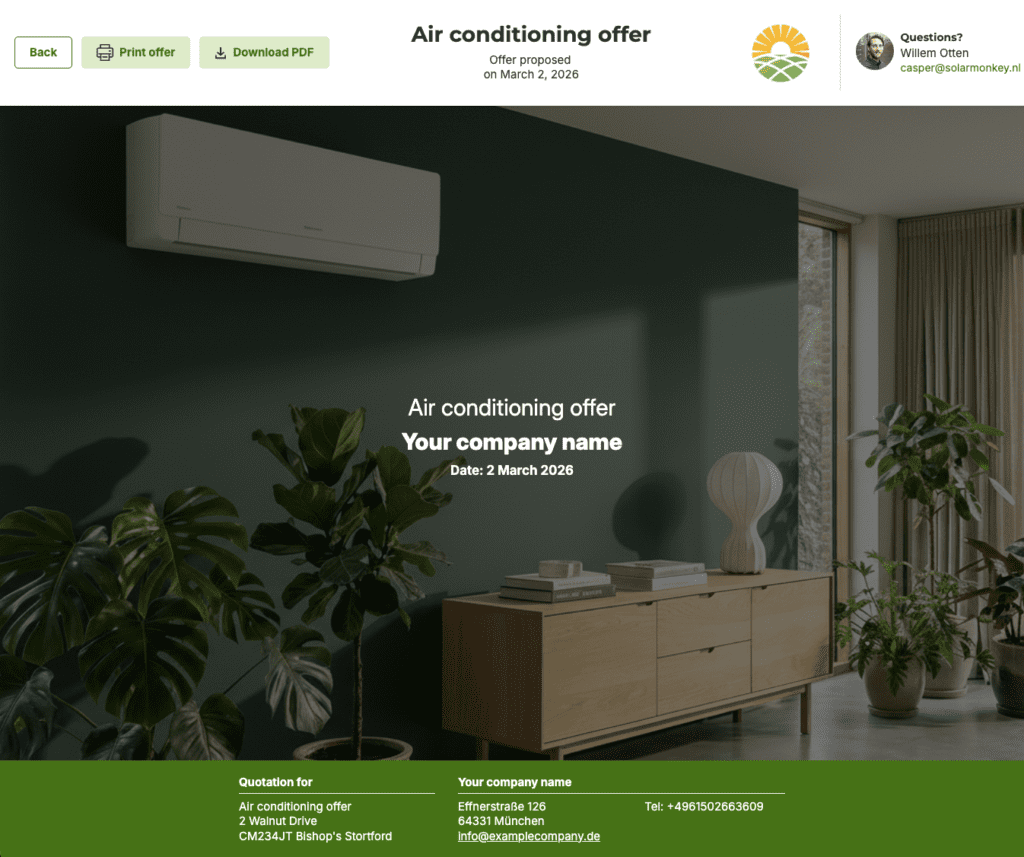 Our proposal templates are fully customizable. From your own brand style and logo to specific texts and terms – everything can be adjusted. This way, you not only have the best-looking air conditioning proposal, but also one that truly matches your company.